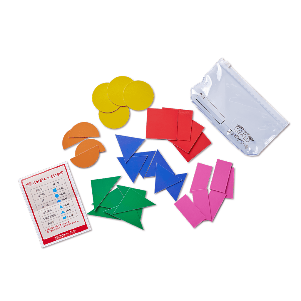 内容物:計30枚入り(円4枚 半円4枚 正方形4枚 長方形6枚 正三角形6枚 二等辺三角形6枚)+ビニールケース