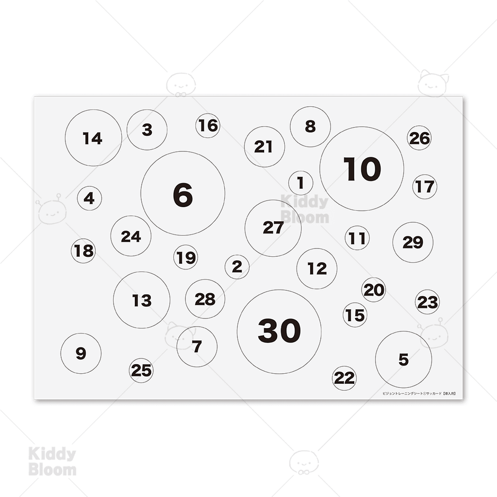 ・なるべく顔を動かさないで、眼球だけをキョロキョロ動かし数字を順番に探し当ててみましょう。