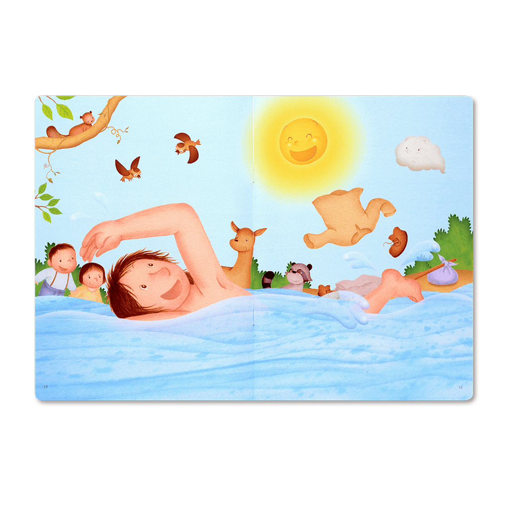 ・見開きページに、絵と文字を分けて表現しています。(ひらがな文字の字形をしっかり確認・記憶を促す)