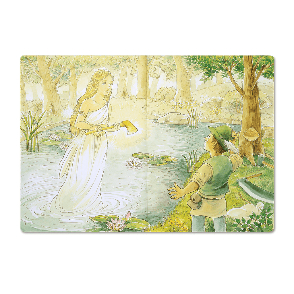 泉の中から現れた女神さまは「正直な心を忘れないで・・・」と木こりに告げます。